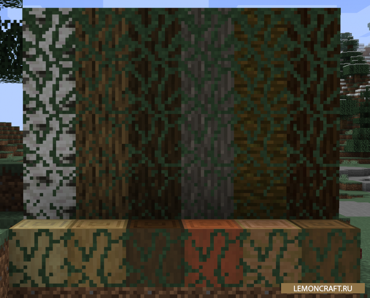 Мод на заросшие блоки Overgrown Blocks добавляет в игру новую механику при которой каменные и деревянные блоки будут со временем зарастать травой. Следя за ростом этой травы вы реально оцените, как течет время в игре.